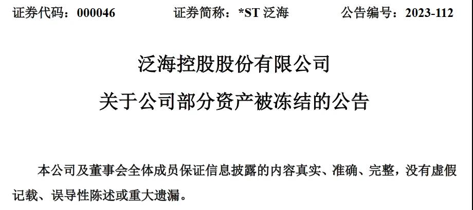 据国家企业信用信息公示系统显示,及经公司控股子公司武汉中央商务区股份有限公司(以下简称“武汉公司”)报告获悉,北京市第三中级人民法院轮候冻结了武汉公司持有的中国民生信托有限公司 76.7616%股权;北京金融法院轮候冻结了公司持有的武汉公司 89.22%股权、民生金服控股有限公司 100%股权、泛海股权投资管理有限公司 100%股权、泛海不动产投资管理有限公司 100%股权、泛海电力控股有限公司 100%股权、北京泛海信华置业有限公司 100%股权、北京山海天物资贸易有限公司 100%股权、泛海商业地产经营管理有限公司 90%股权、泛海物业管理有限公司 90%股权、泛海酒店投资管理有限公司 40%股权,冻结了武汉公司持有的深圳市泛海置业有限公司 100%股权;北京市东城区人民法院冻结了公司持有的武汉公司 89.22%股权。上述资产冻结期限均为三年。