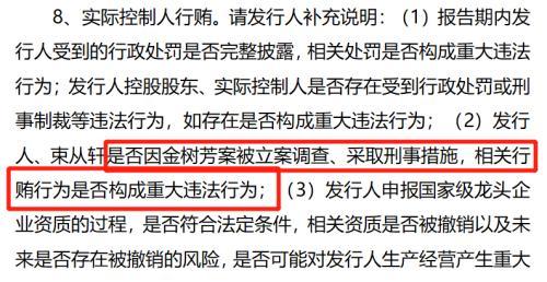值得注意的是,证监会2022年10月21日的反馈意见中,要求说明实控人涉及“金树芳案”行贿的情况。
