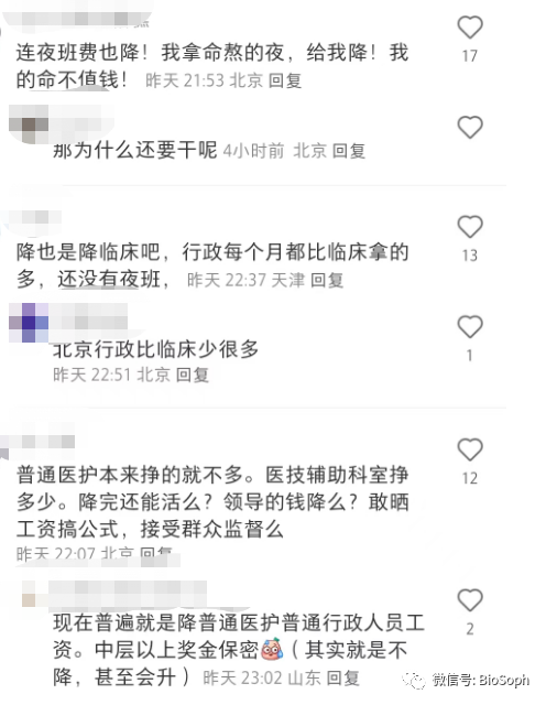 这里补充一下:发表上述言论的网友可能并不了解医护人员的劳动强度、学习成本、薪资结构及分级制度。
