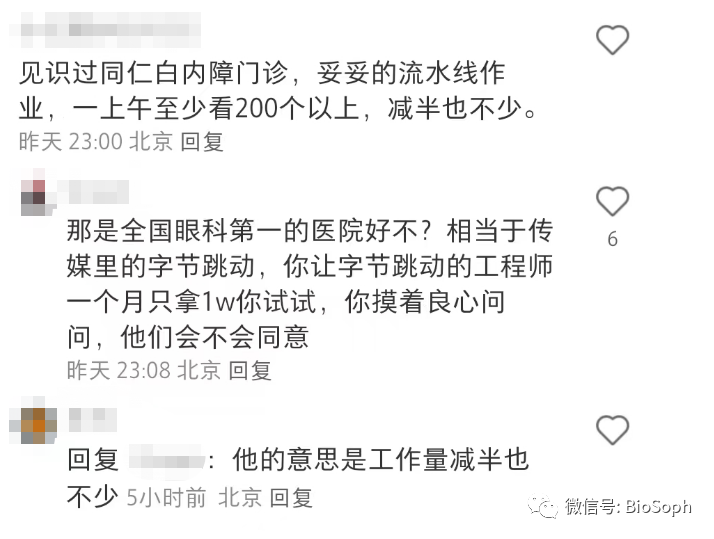 该眼科主任说:“同仁医院是个大医院,它降薪应该跟其他医院没什么关系,更小的医院本身薪酬就低,没有再降的余地。”