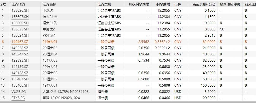 根据Wind数据显示,目前恒大地产集团仍存续的人民币债券共13只,涉及金额513.63亿元。存续美元债2只,涉及金额折人民币约186.48亿元。