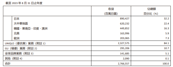 10月12日晚间,优衣库母公司迅销有限公司在港交所公告2023年财政年度(2022年9月1日~2023年8月31日)业绩。按地区而言,大中华地区的收益为6202亿日元(同比增长15.2%),经营溢利为1043亿日元(同比增长25.0%)。
