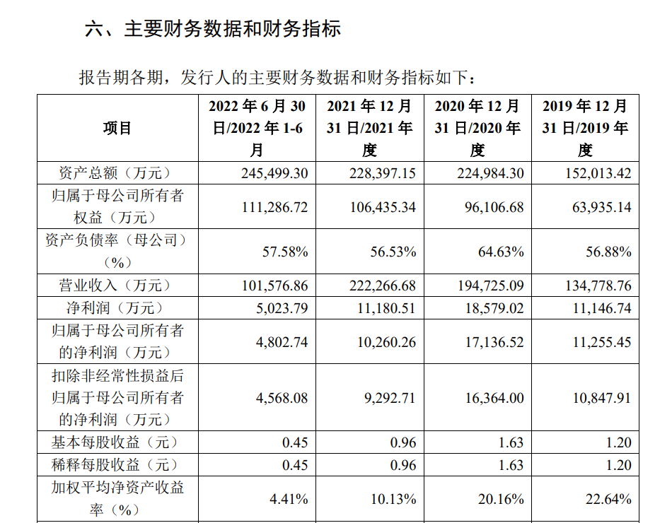 2019-2021年以及2022年上半年,想念食品实现营业收入分别约为13.48亿元、19.47亿元、22.23亿元、10.16亿元;对应实现归属净利润分别约为1.13亿元、1.71亿元、1.03亿元、4802.74万元。报告期各期末,公司流动比率分别为0.95、1.71、1.69、1.68;速动比率分别为0.8、1.06、0.93、0.85;公司资产负债率(母公司)分别为56.88%、64.63%、56.53%、57.58%。