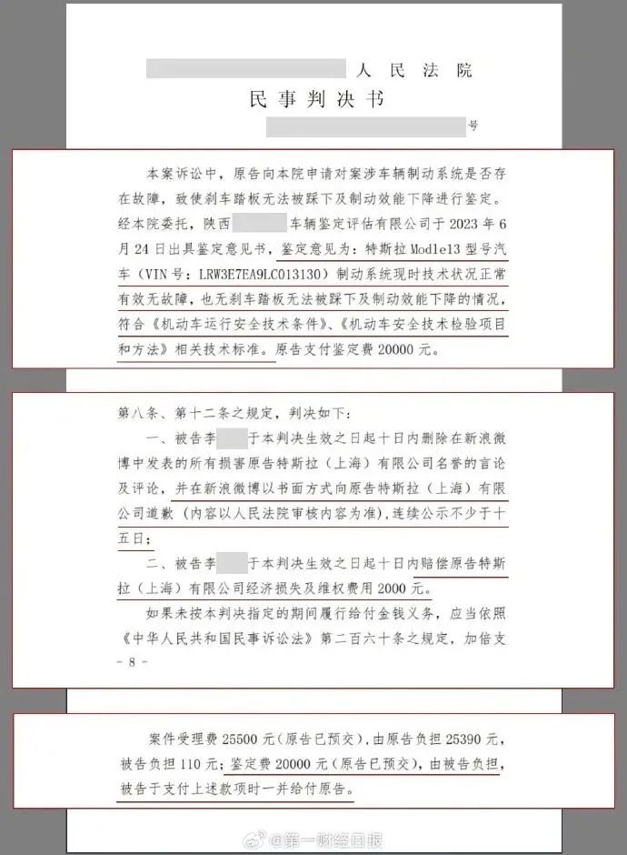 近日,特斯拉“刹车失灵案”和上海车展车顶事件迎来重大进展,事件“二号人物”被判向特斯拉道歉赔偿,并赔偿经济损失及维权费用2000元。
