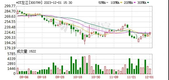 今年10月底,*ST左江也曾发布《关于公司股票退市风险的特别提示性公告》显示,该公司截止到2023年第三季度实现营业收入3372.21万元,若公司2023年经审计的净利润为负值且营业收入低于1亿元,则面临终止股票上市交易的风险。同时,*ST左江2022年度被出具了保留意见的审计报告,如若保留意见未消除,公司2023年被出具非标准的审计报告,公司同样面临终止股票上市交易的风险。