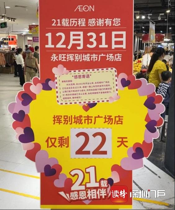 公开资料显示,永旺新城市广场店,最初叫作“吉之岛”,2013年改名永旺,这也是深圳开的第一家永旺。当日,读特记者看到永旺门口摆放着终止营业的公告。公告称,永旺城市广场店将于2023年12月31日结束营业后停止经营,停业前将开展一系列商品优惠活动。