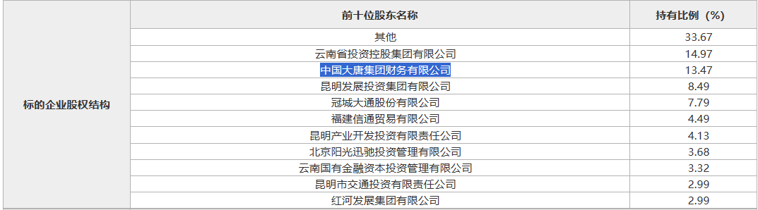 从股权结构来看,富滇银行前十位股东合计持有其66.33%股权。其中,第一大股东为云南省投资控股集团有限公司,持股14.97%;第二大股东为大唐财务,持股13.47%。也即,受让方将成为富滇银行的新晋二股东。