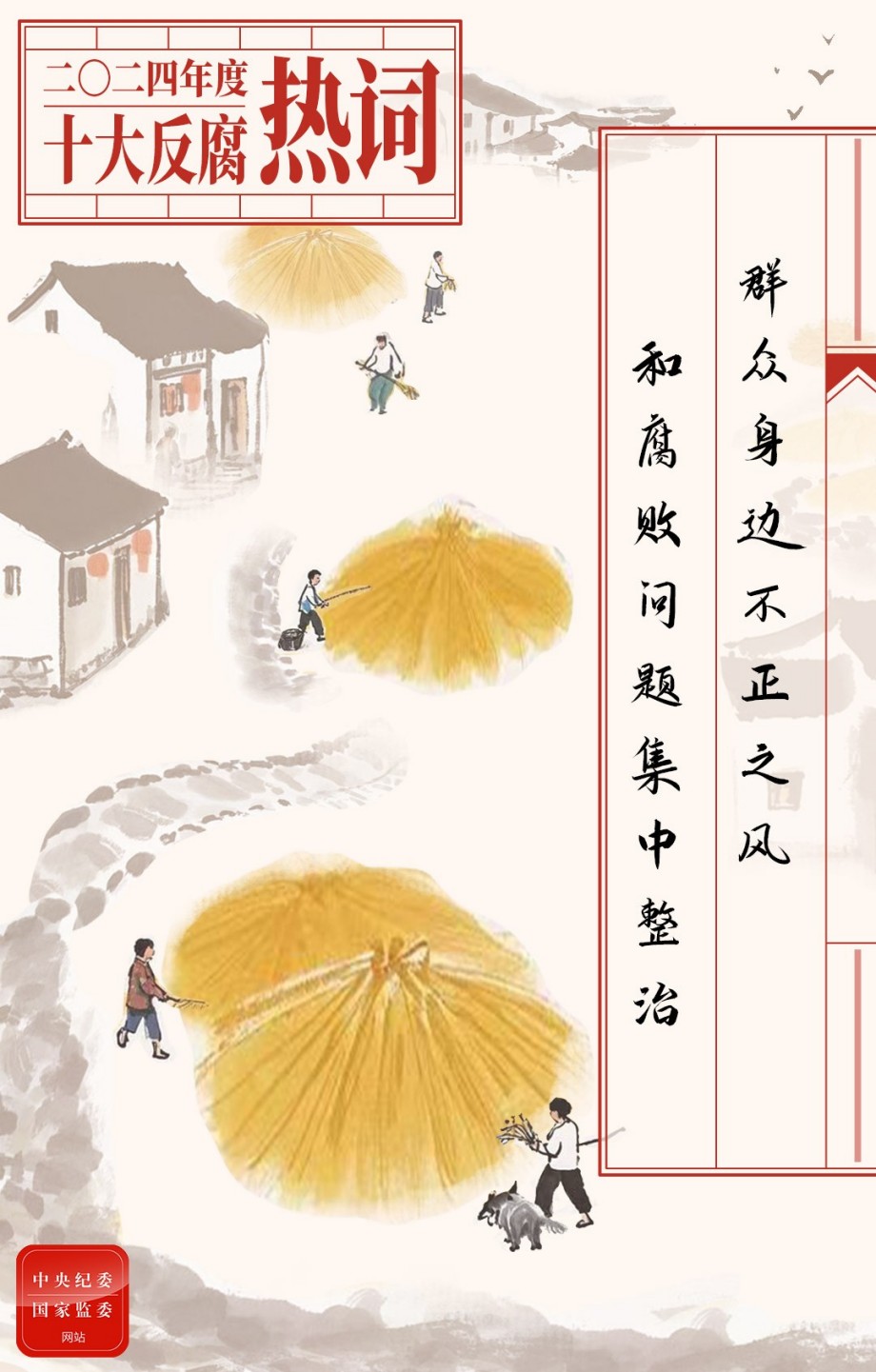 岁月不居,时节如流。转眼,2024年末已至。今年是新中国成立75周年,也是实现“十四五”规划目标任务的关键一年。在以习近平同志为核心的党中央坚强领导下,中央纪委国家监委和各级纪检监察机关深入学习贯彻习近平新时代中国特色社会主义思想特别是习近平总书记关于党的自我革命的重要思想,忠诚履职尽责,推动新征程纪检监察工作高质量发展取得新成效。在辞旧迎新的节点上,中央纪委国家监委网站联合国家语言资源监测与研究中心,基于大数据语料库,评选推出2024年度十大反腐热词,敬请关注。