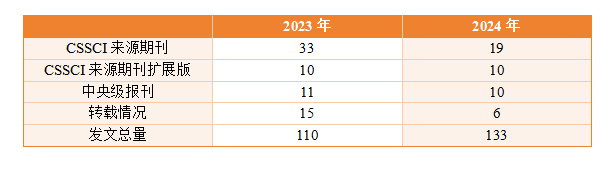 本次数据采集与整理,以数据采集与人工筛选相结合,通过整理湖南各大高校在2024年1月1日至2024年12月31日的发文情况,共收集“反腐败”“纪检”“监察”“廉洁”“廉政”“党和国家监督”“党的纪律”“党内法规”“依规治党”“自我革命”等相关主题论文133篇。在我省2024年发表的133篇论文中,CSSCI来源期刊19篇;CSSCI来源期刊扩展版10篇;中央级报刊理论文章10篇;中国人民大学复印报刊资料与权威文摘转载6篇。若存在疏漏,敬请批评指正。