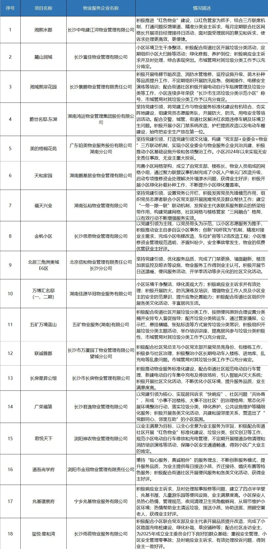 记者了解到,进入2025年第一季度红榜的企业,是在党建引领、物业标准化建设、文明创建、安全生产、物业企业信用建设、垃圾分类、电动自行车整治、小区防涝排渍等涉及物业服务企业的中心工作中,表现突出的企业。