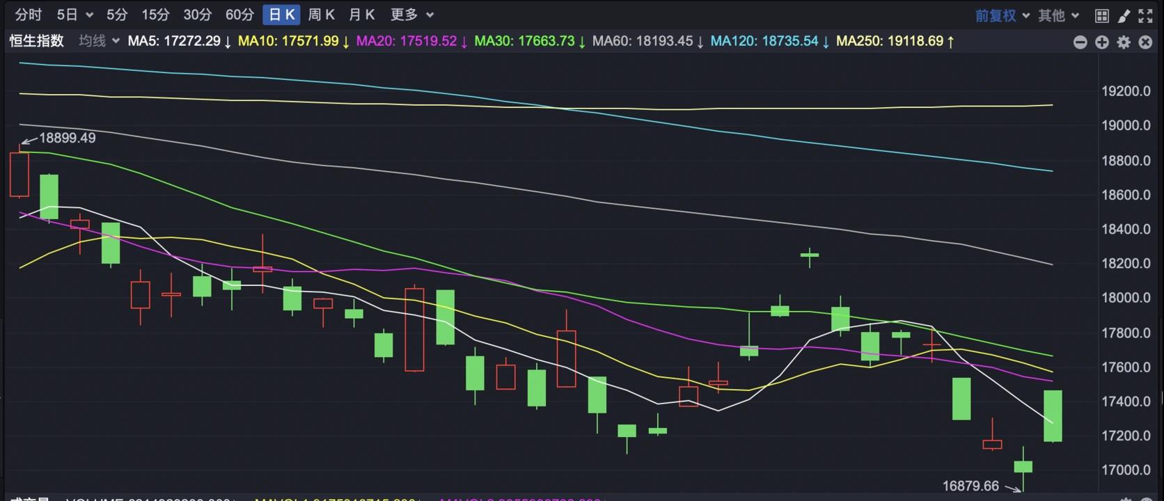 港股市场方面,今日早盘恒指大幅高开,早盘最大涨幅达2.79%,不过随后买盘不济。截至下午发稿前,恒生指数涨幅收窄,报17180点,涨幅1.10%。而恒生指数上午最大涨幅一度高达4.96%,随后也有所回落。发稿前,恒生科技指数上涨2.61%。