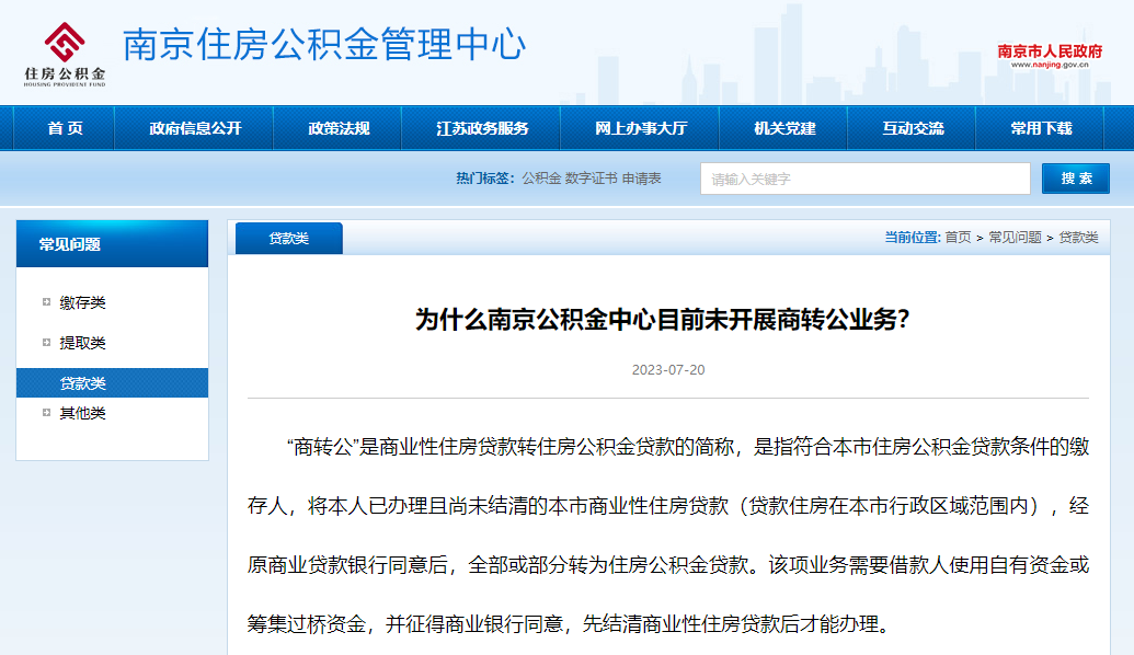 江苏部分地方恢复“商转公”业务,但南京尚未推出,据扬子晚报报道,主因是南京公积金的提取率较高。据介绍,“商转公”通常需要借款人使用自有资金或筹集过桥资金,并征得商业银行同意,先结清商业性住房贷款后才能办理。