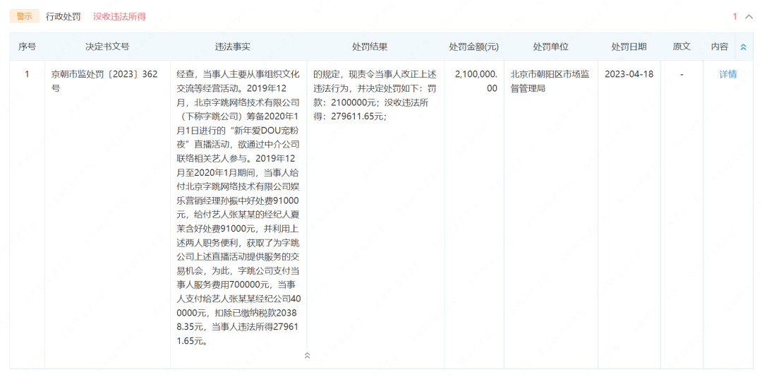 据企查查,北京速倍文化传播有限公司被北京市市场监督管理局罚210万元,并没收违法所得279611.65元。