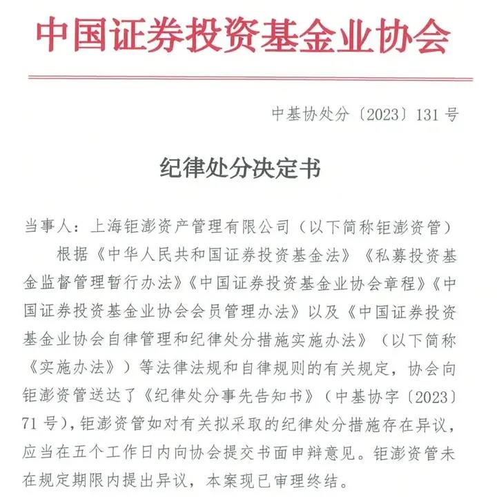 据此,中基协对钜澎资管进行公开谴责,并暂停其私募产品备案六个月。