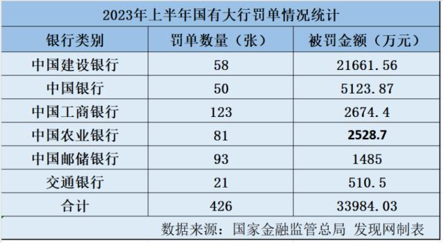 国有大行收罚单超400张,建设银行被罚超2亿元