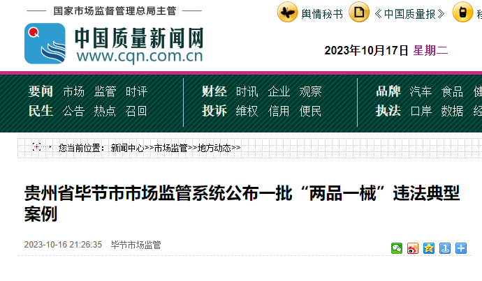 10月16日,贵州省毕节市市场监管系统公布了一则关于一批“两品一械”违法典型案例。其中,有两家医院检验科,因使用过期医疗器械被行政处罚。