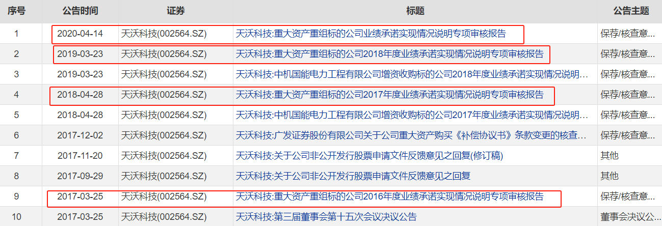 2020年4月13日《重大资产重组标的公司业绩承诺实现情况说明专项审核报告》披露了中机电力的业绩承诺完成情况。