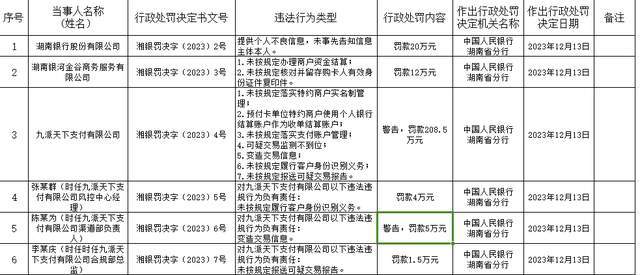 日前,据央行公布的行政处罚信息,因未按规定落实特约商户实名制管理等“七宗罪”,九派天下支付有限公司(下称九派天下支付)被警告,并收到208.5万元的罚单,另有多名负责人被罚,具体违法行为如下:1.未按规定落实特约商户实名制管理;2.预付卡单位特约商户使用个人银行结算账户作为收单结算账户;3.未按规定落实支付账户管理;4.可疑交易监测不到位;5.变造交易信息;6.未按规定履行客户身份识别义务;7.未按规定报送可疑交易报告。
