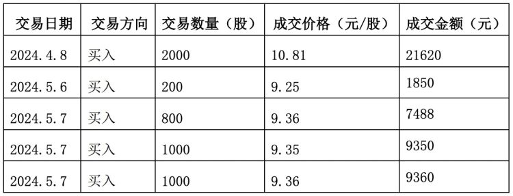 公告显示,王西栋先生的妻子韩玉霞女士于2024年4月8日至2024年5月29日期间,先后进行了8笔交易。