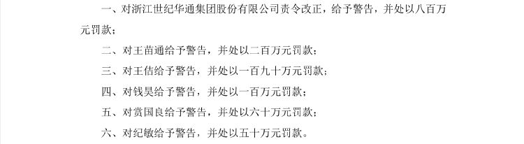 根据当事人违法行为的事实、性质、情节与社会危害程度,中国证监会决定,对世纪华通、时任董事长王苗通等相关人员总计???400万元。